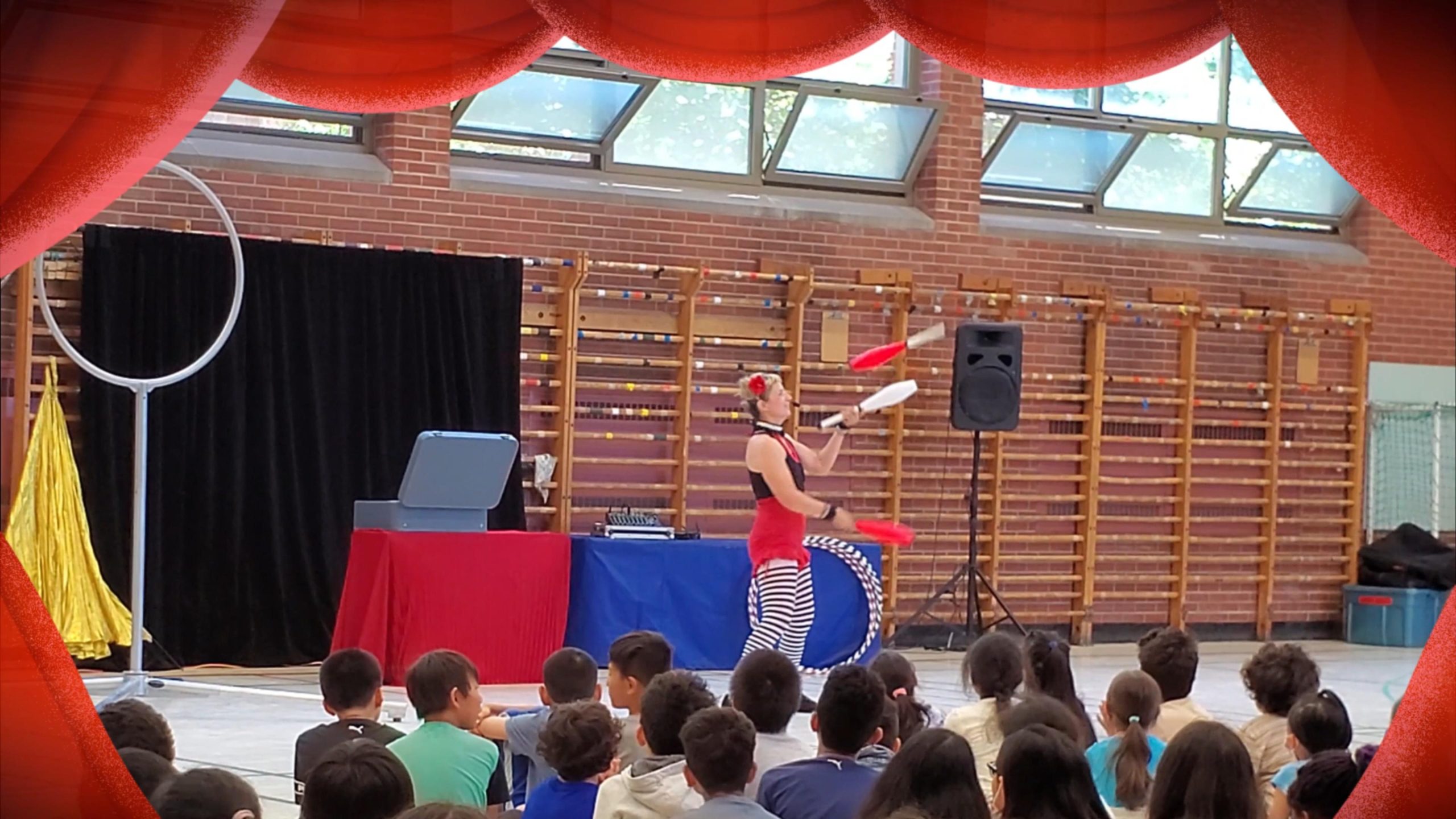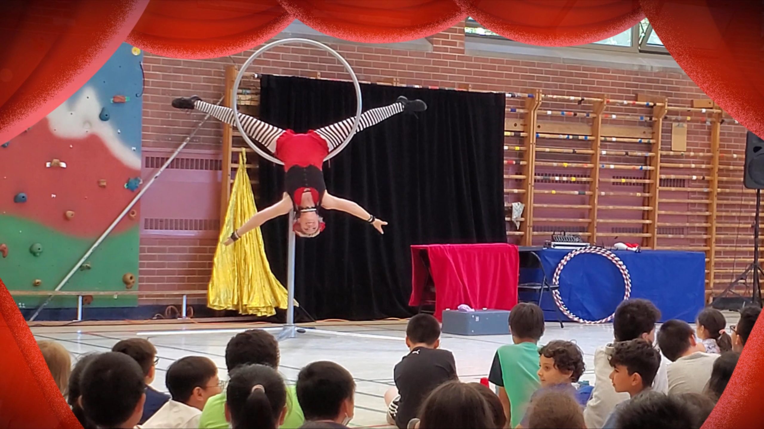 Un spectacle multidisciplinaire amusant avec les 1001 tours de cirque de GiGi ! On peut la voir réaliser des tours incroyables avec de multiples cerceaux, un peu de magie et beaucoup de comédie !