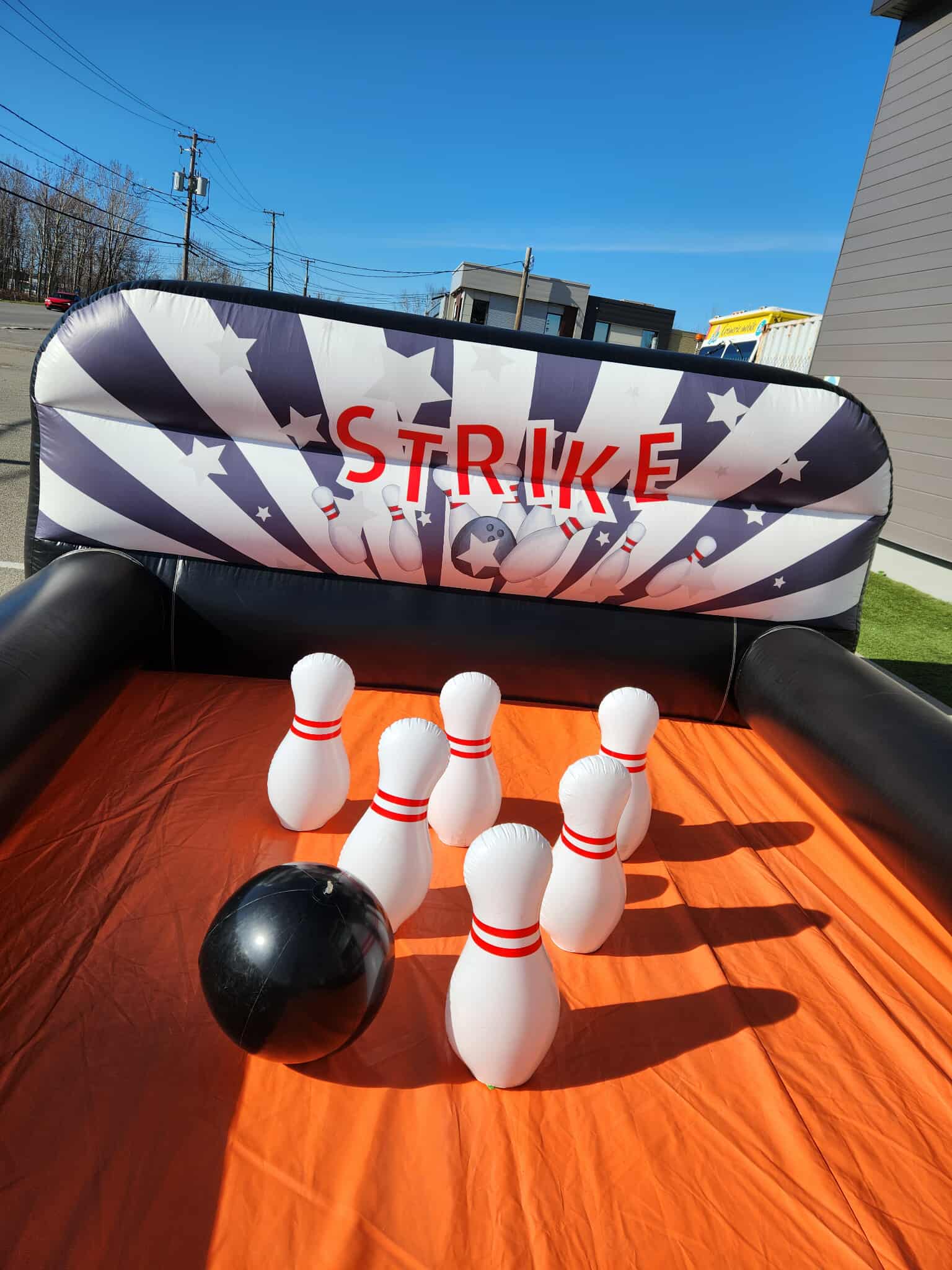 Strike, spare ou… éclat de rire! Bowling géant fait tomber les quilles et les soucis, le temps d’une partie pleine d’énergie et de fun. Un classique gonflable pour toute la famille.