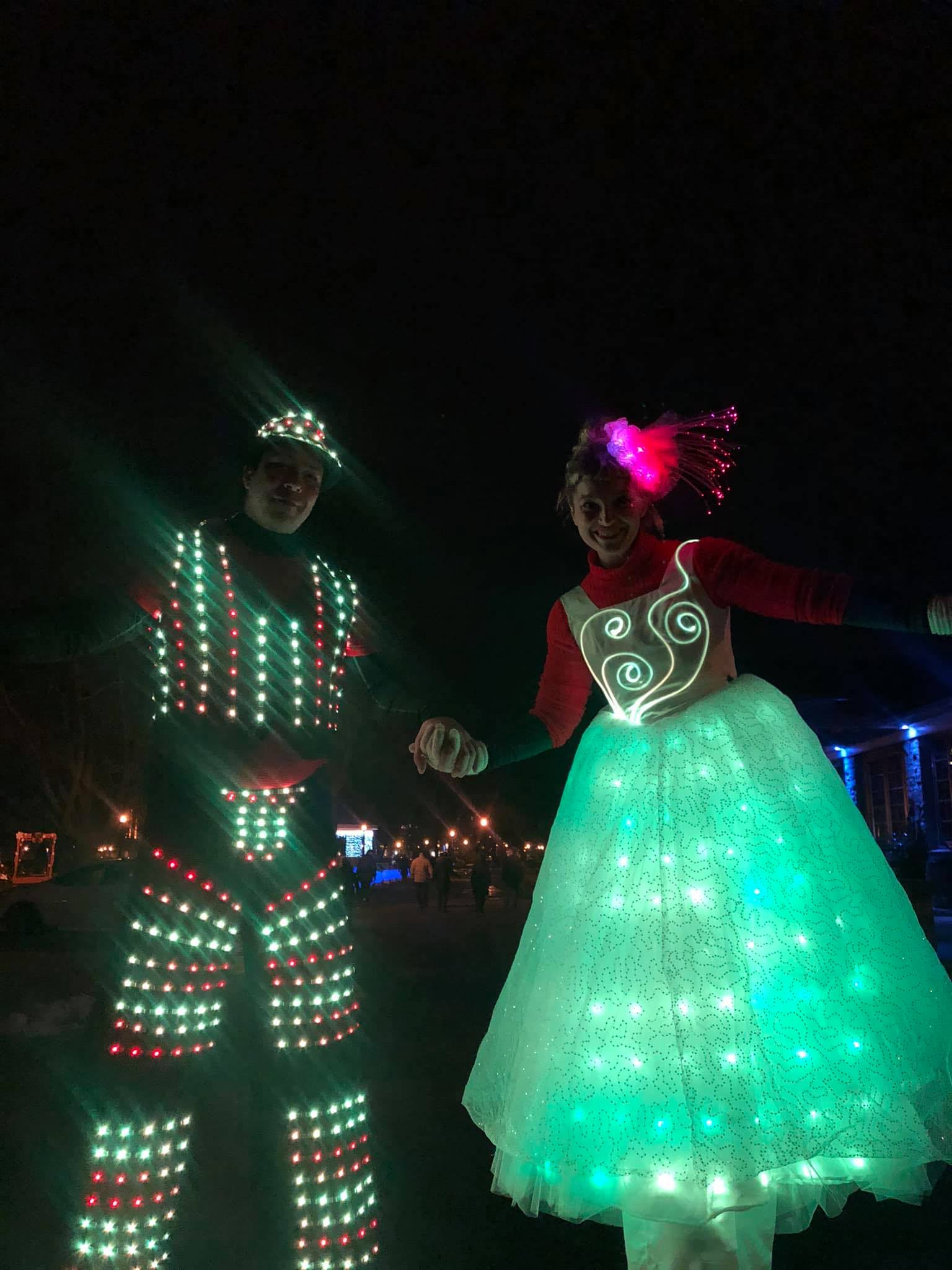 Mais qu’est-ce que ces gigantesques personnages qui brillent dans le noir ? C’est nos échassiers qui vous accueillent à bras ouverts ! Découvrez les géants lumineux les plus charmants et grandioses !