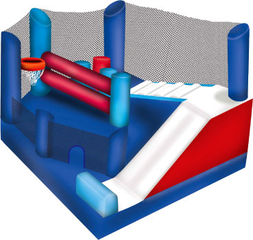 Le Maxi Fun ne s’est pas mérité son nom pour rien ! Un grand espace pour sauter, des obstacles, un panier de basketball, un mur d’escalade et une glissade… Bref, un max de fun !