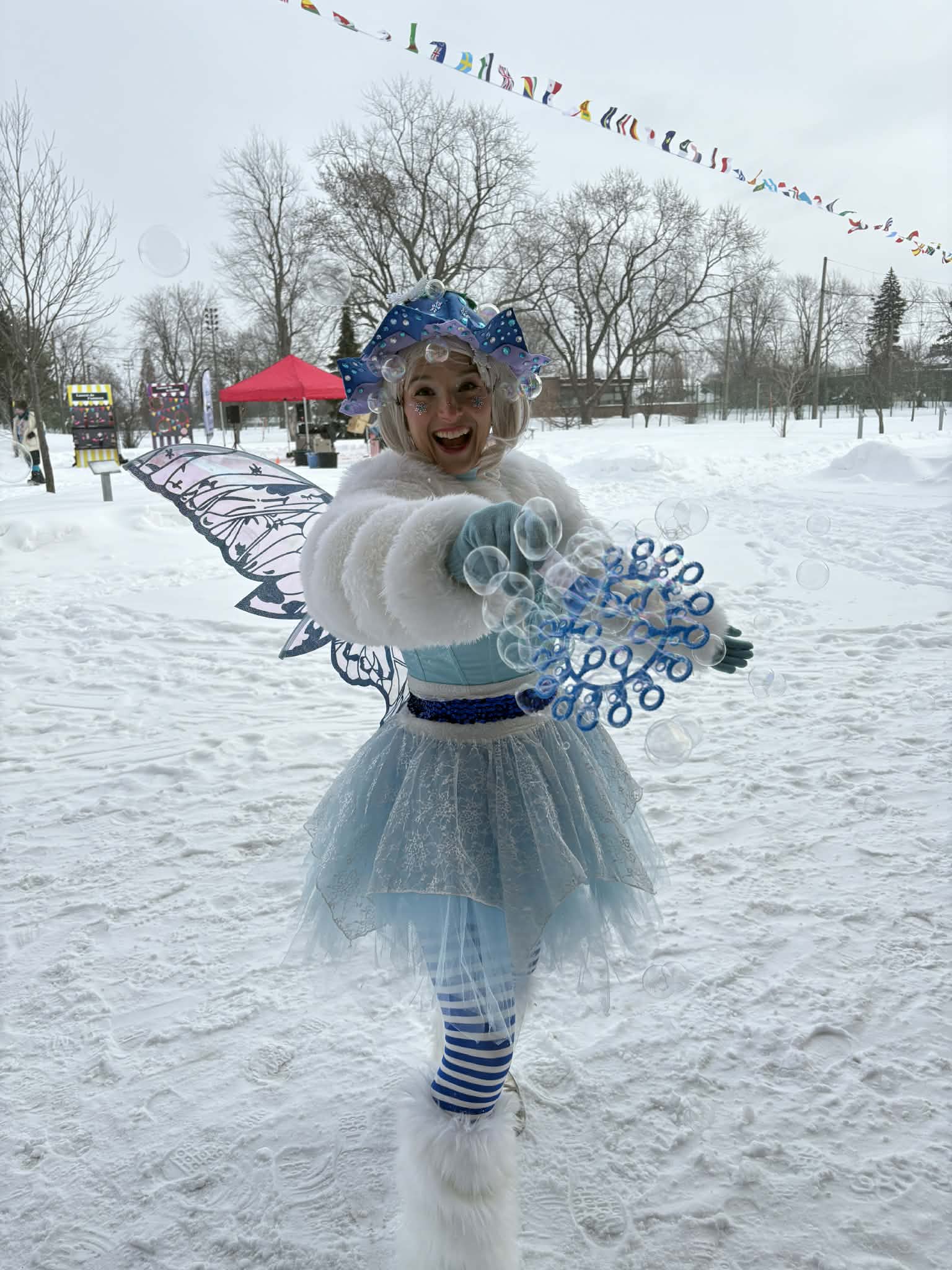 Miss Fizz Givrée est la fée des bulles, légère et pétillante comme un éclat de rire d’hiver. Partout où elle passe, l’air se remplit de bulles scintillantes, semblables à de petits flocons enchantés, qui dansent autour d’elle comme des fragments d’arc-en-ciel givrés. Avec ses bulles magiques et son sourire étincelant, elle émerveille petits et grands, transformant chaque instant en un nuage de joie et de douceur, comme une promenade au cœur d’un paysage enneigé. Son univers est un monde de lumière cristalline, de rires chaleureux et de sourires lumineux… un souffle hivernal enchanté qui fait rêver, même par grand froid ❄️