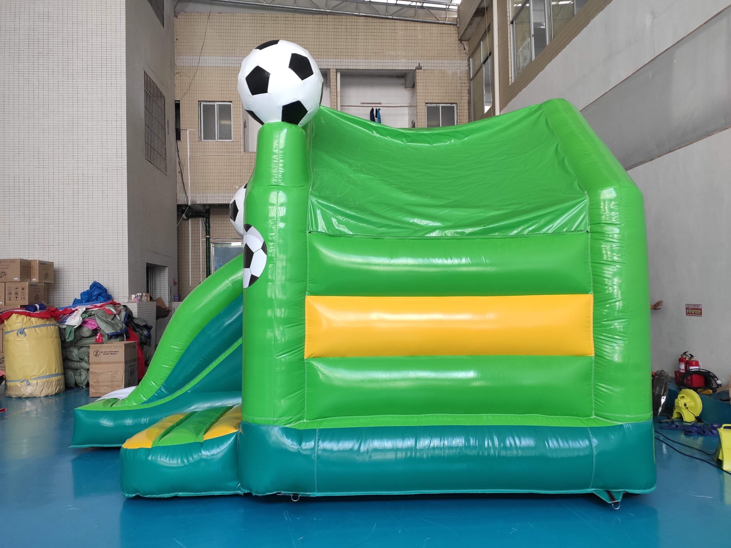 Ici, c’est soccer version rebondissante! Pas besoin de crampons, seulement beaucoup d’énergie. Un hit assuré pour les petits athlètes en devenir.