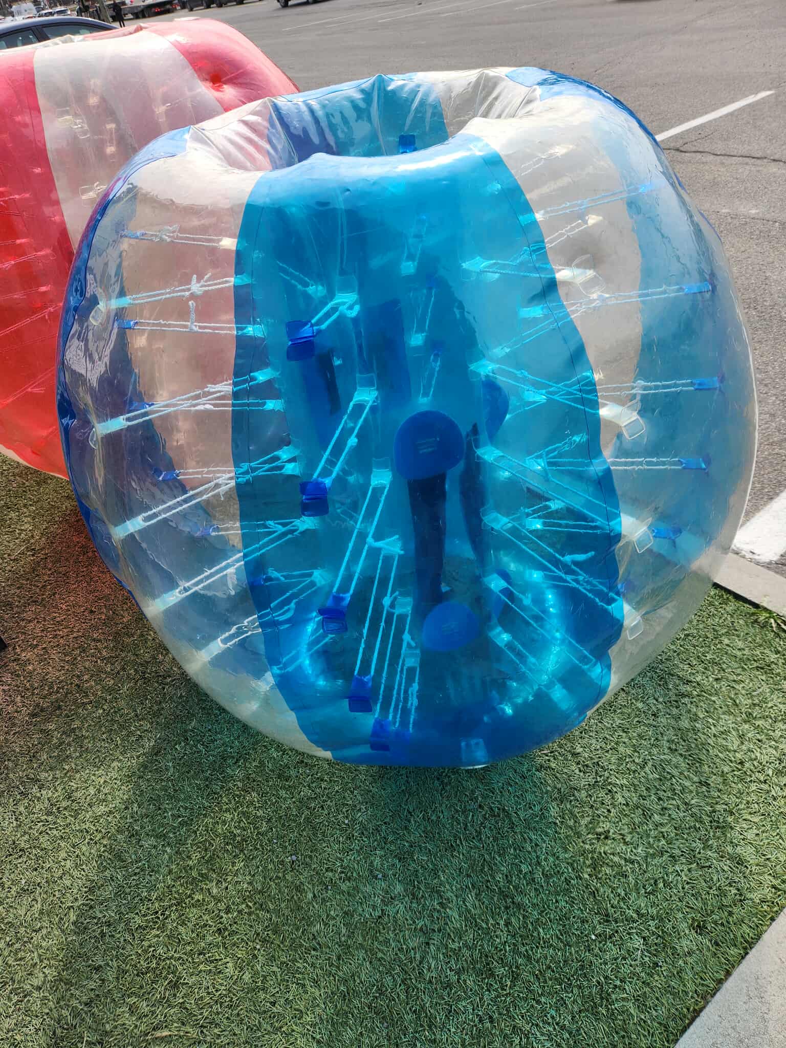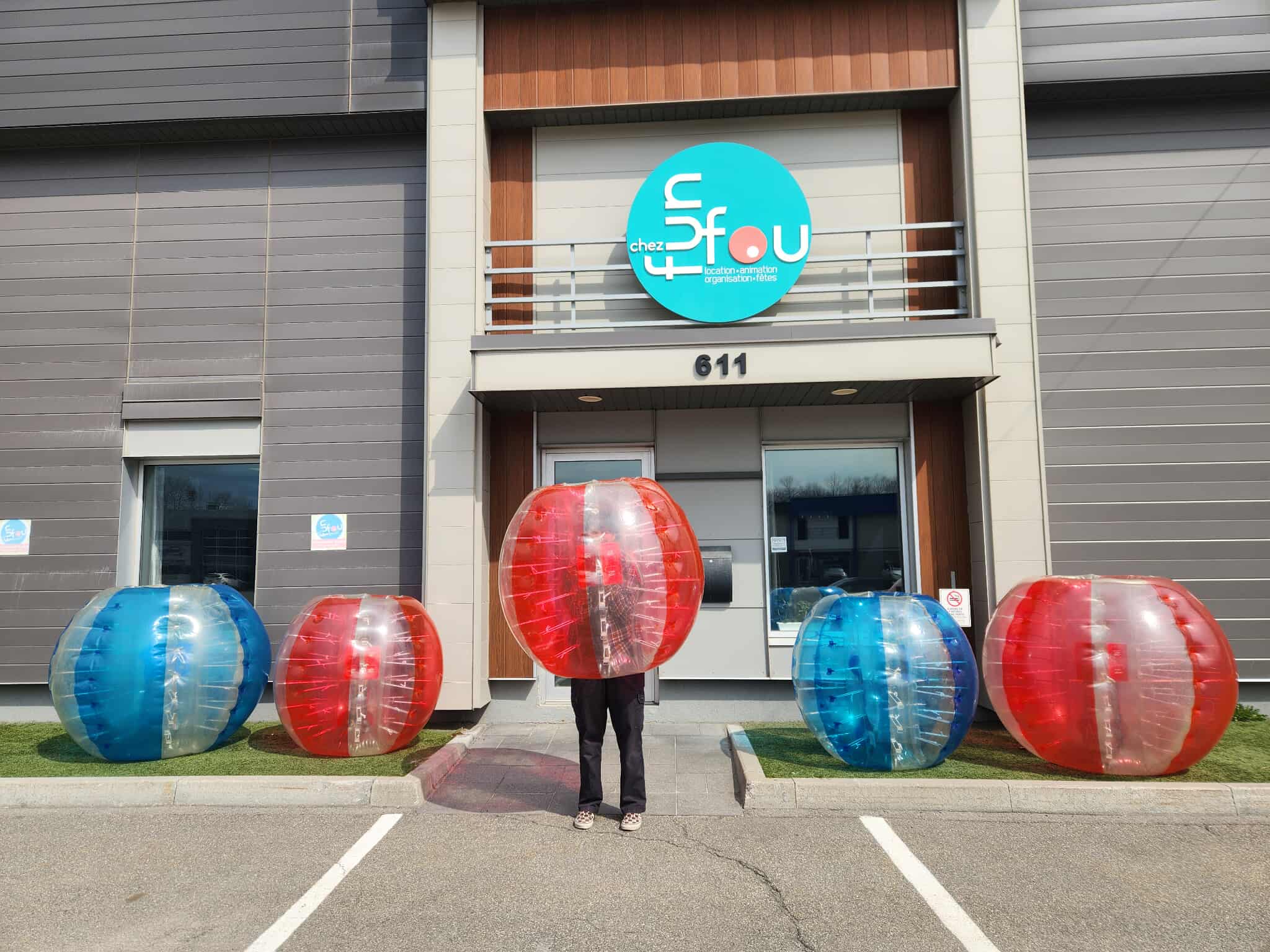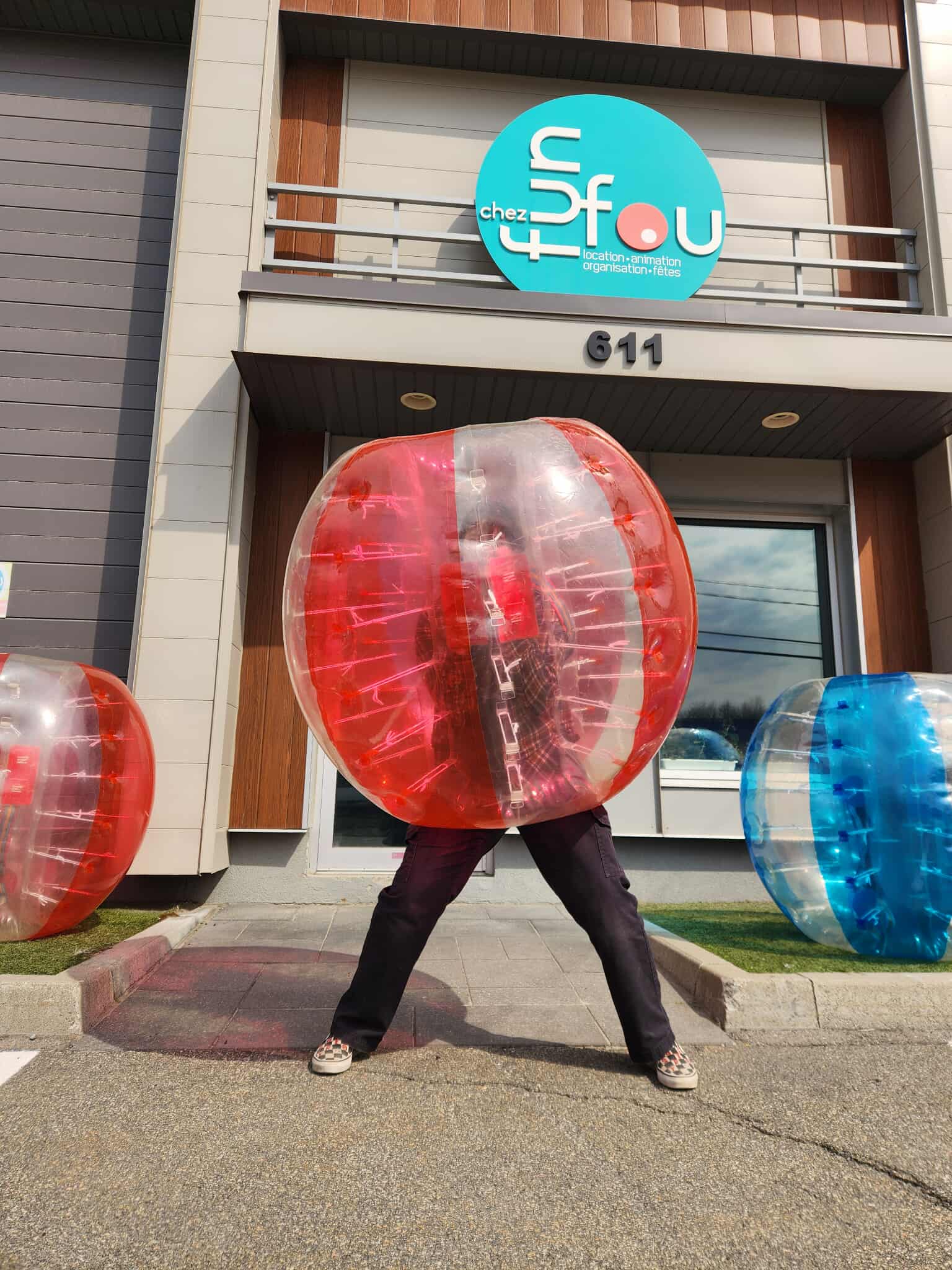 Chaque participant prend place dans une bulle bleue ou rouge afin de jouer une partie de soccer un peu spéciale…avec placages autorisés, surtout pour avoir du fun !